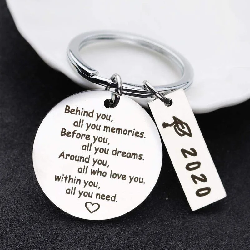 Graduation gifts,the keychain hand engraved with-Behind you, all your memories. Before you, all your dreams. Around you, all who love you. Within you, all you need.