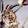 This is a wooden kinetic sculpture that simulates the motion of a hummingbird in flight. Every element of movement is beautiful, from the beating wings to the flaring tail. Intricate systems of Handmade parts bring the sculpture to life.