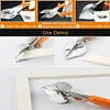 This Adjustable Multi-Cutter Tool is great for cutting PVC strips, rubber gaskets, molding and weatherstrip. Simply adjust the guide with the desired angle line on the tool's platform and you have a perfect 135, 120, 105, 90, 75, 60 or 45 degrees miter cut every time. The cutter is made of high quality steel with vinyl handgrips which allow for comfort when cutting.