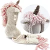 Crochet Cartoon Unicorn Winter Hat With Scarf Pocket