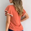 Fashion - The short sleeves are decorated with ruffles, and break through the traditional round neck design, and the wave points increase the sense of design. Hollow design on the shoulder, cool and fashionable at the same time.