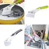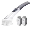 EASY TO USE: Just open the cover at the end of the brush to inject cleaning liquid into the handle and press the button to start cleaning your kitchen and more without touching the cleaning liquid directly. (The silicone button provides good sealing performance without fear of leakage.)