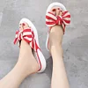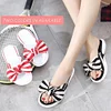 1*pair of Fashion Open Toe Wedges Bowties Stripe Slides Slippers