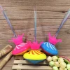 Easy to Play: Plug the fiber on the crown and put 3 AA batteries to the battery compartment (at the bottom of the gyro), then open switches.Before putting the gyro on the ground, please pick up the gyro for about 10 seconds to keep balance.