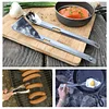 Widely Used - It features a serrated corner edge that allows it to cut into and check if food is cooked through whilst cooking. The long spork is perfect for getting into deep food packets and can be used as both a eating and serving utensil. Its functionality makes it great for picking up all kinds of food.