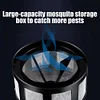 Weatherproof trap emits UV light and titanium dioxide to mimic human scent and attract insects. Vacuum suction kills mosquitoes, flies, wasps, and more. Pesticide and odor free. Use day or night, inside or out. Fast Safe Effective. The fan sucks them into a cage where they perish naturally.